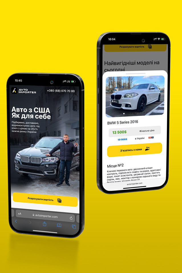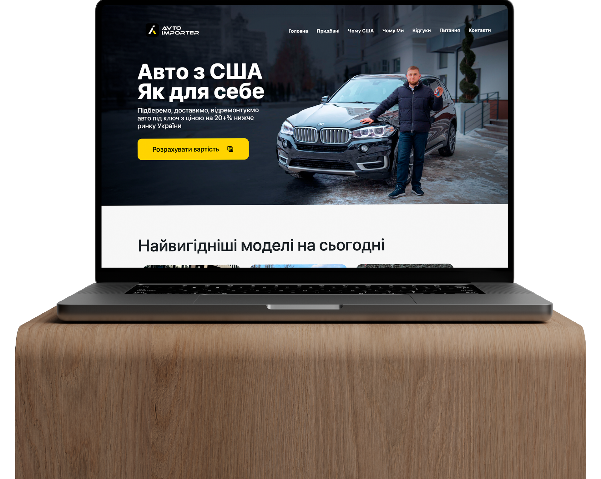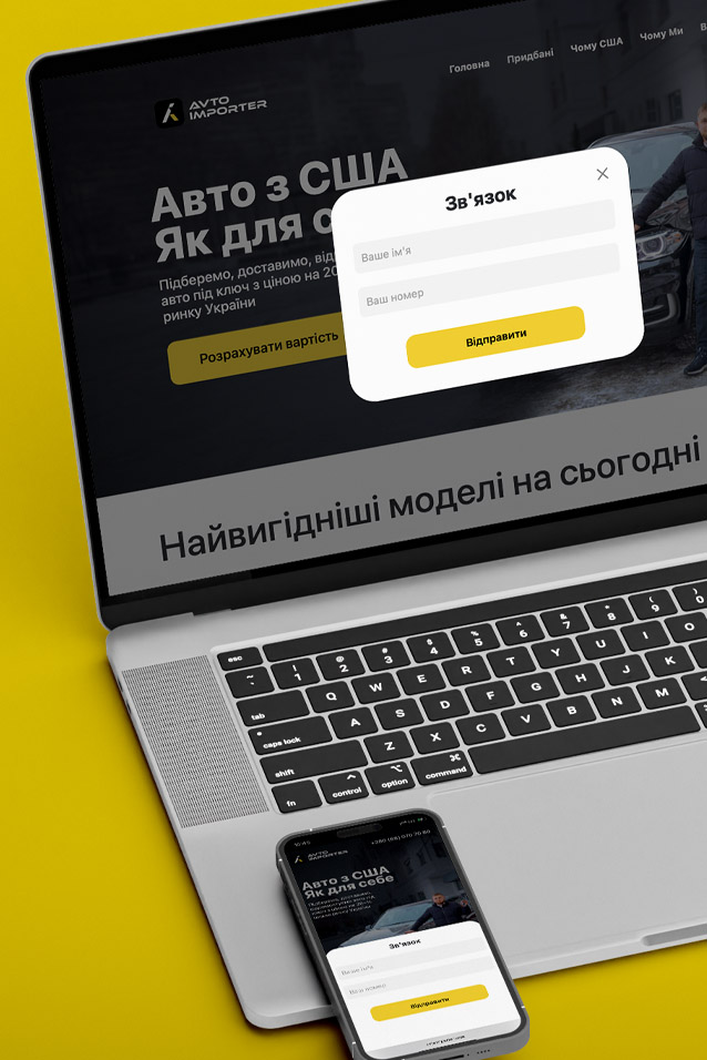 Avto Importer is a website project for a car company specializing in importing vehicles from the USA. The main goal is to convince users of the simplicity and transparency of the ordering process, making it clear and convenient for them to place an order