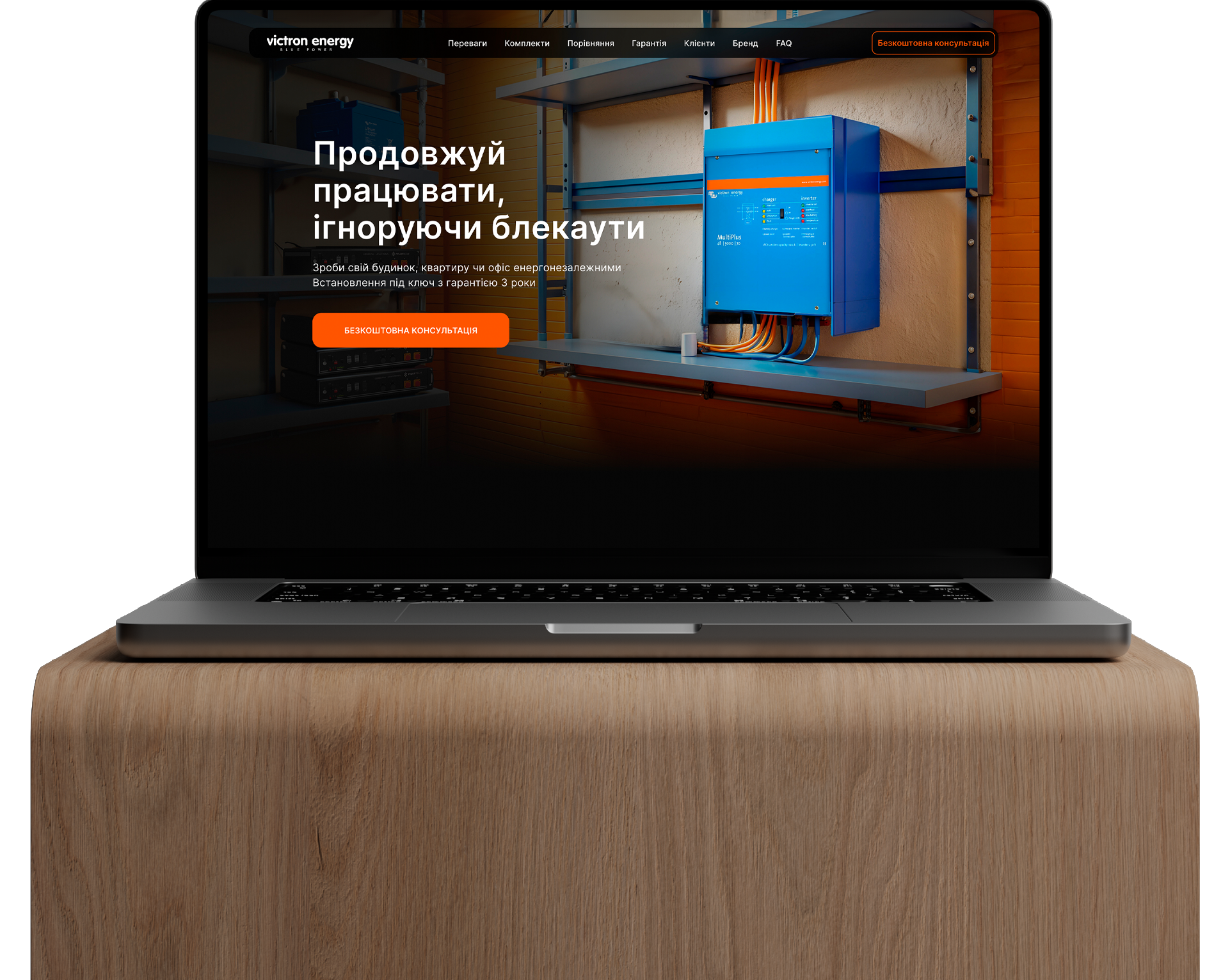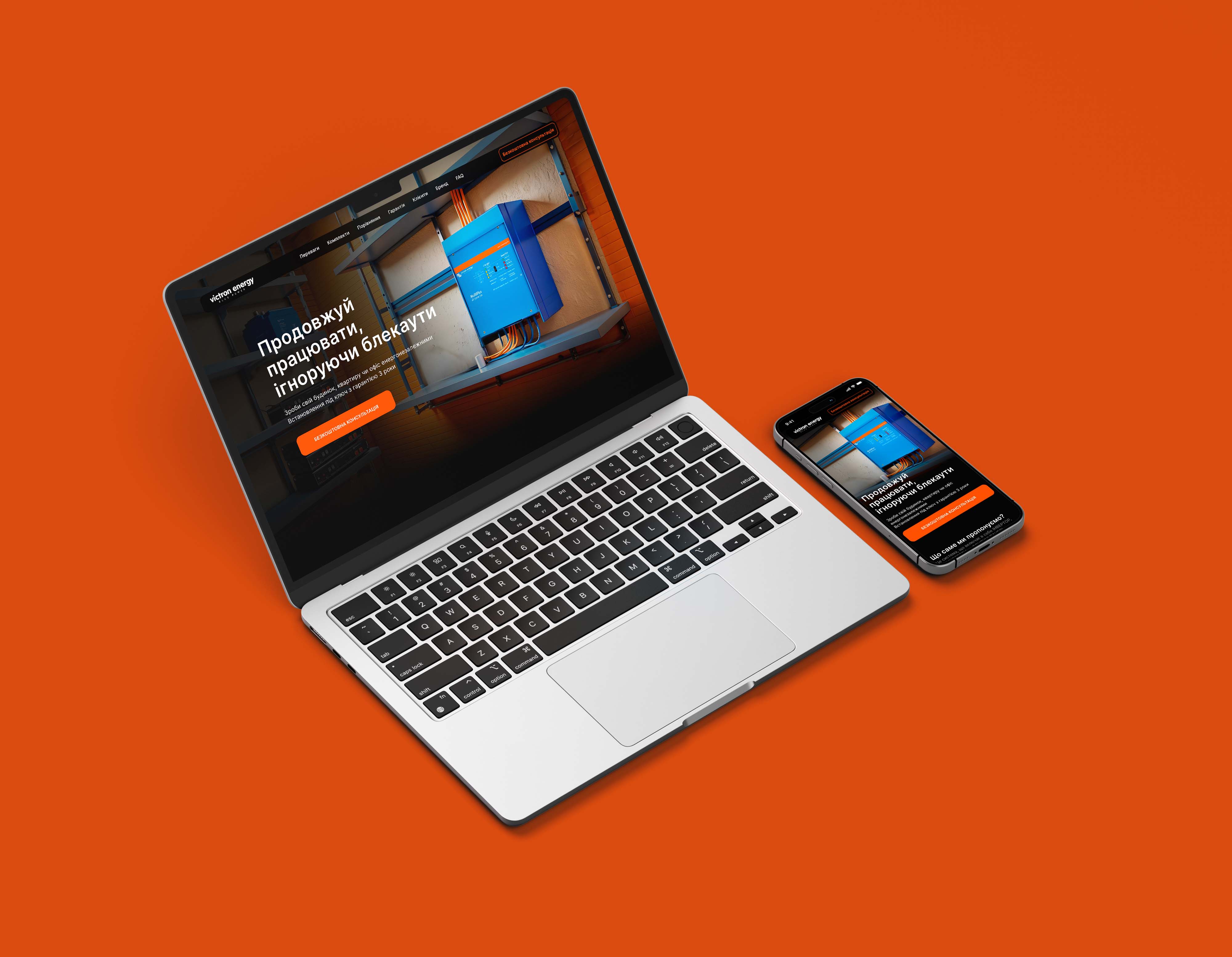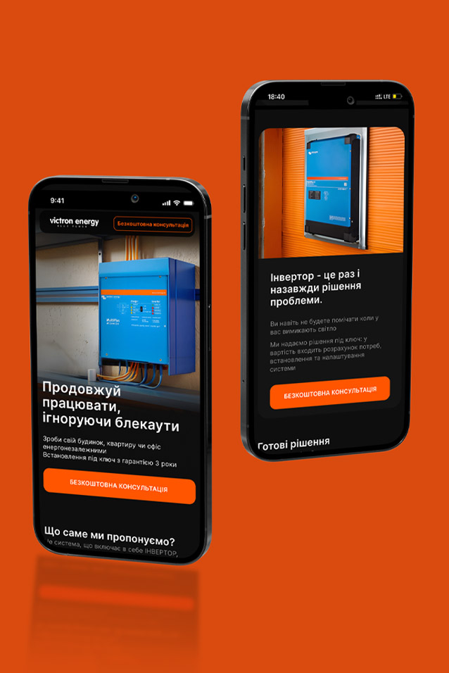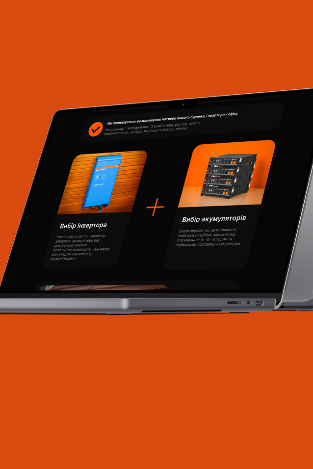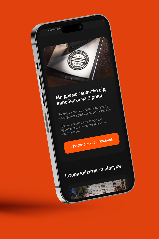 Victon Energy is a website project for a company specializing in the installation of uninterrupted power supply equipment for homes. The goal is to emphasize and prove the convenience and necessity of such solutions, while also showcasing the company’s seriousness and extensive experience in the field