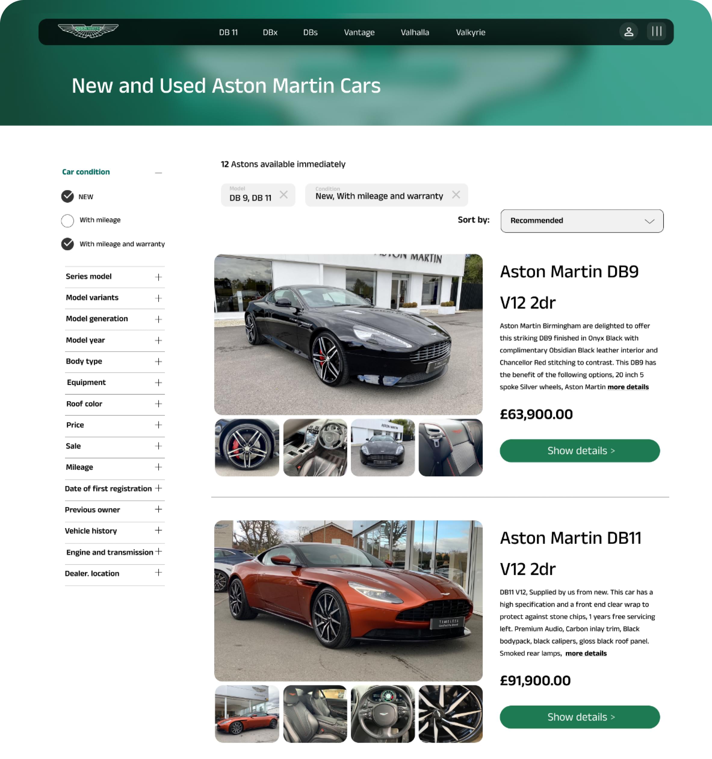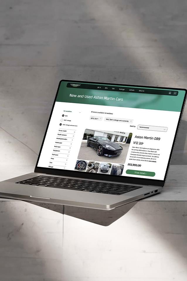 Discover the essence of simplicity and beauty with Aston Martin car search pages. The intuitive and uncomplicated interface allows users to easily find their dream Aston Martin car, while the visually appealing design enhances the overall experience.